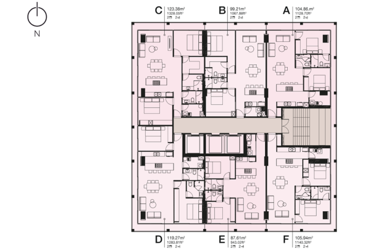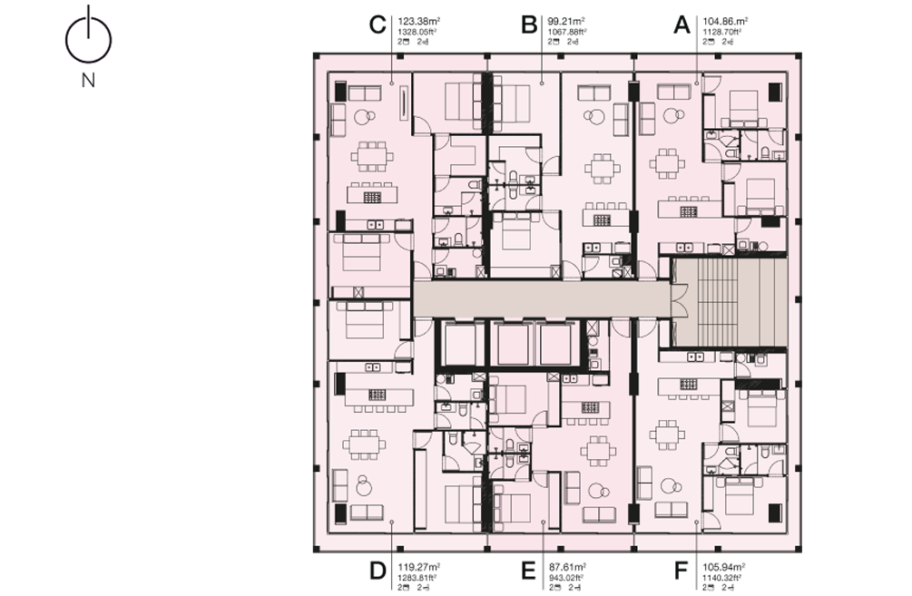 Esta planta es representativa del nivel tipo, puede tener variaciones y el desarrollador no se responsabiliza por los cambios futuros del proyecto. Todos los materiales, dimensiones y planos son aproximados. La información está sujeta a cambios sin previo aviso. Los planos no están a escala, un espacio de piso utilizable real puede variar en los planos. El desarrollador se reserva el derecho de hacer revisiones a los planos de planta.